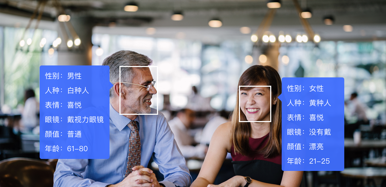 基于深度學(xué)習(xí)算法,圖普科技可以檢測圖像中的人臉并進行一系列人臉相關(guān)的特征分析,當(dāng)前支持識別出包括性別、顏值、年齡、表情、人種、風(fēng)格、是否戴眼鏡等多維度人臉信息??捎米骰A(chǔ)人臉信息的解析,智能分析人群特征。