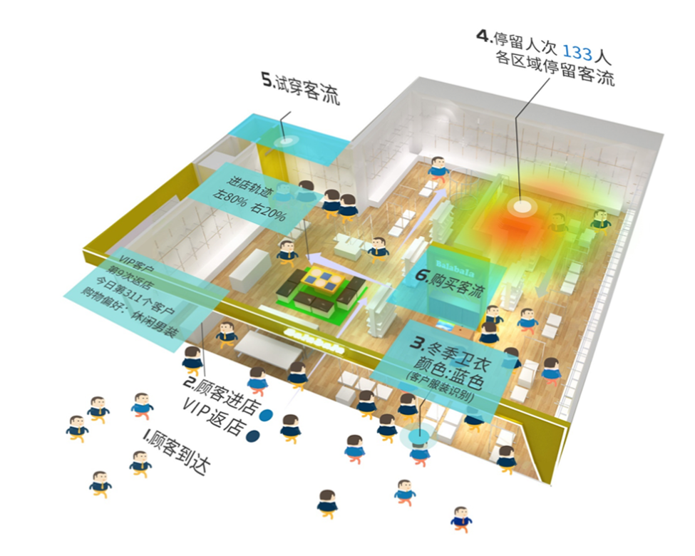 直觀掌握進(jìn)店顧客在門店內(nèi)的長(zhǎng)時(shí)間停留區(qū)域和高關(guān)注度貨架。